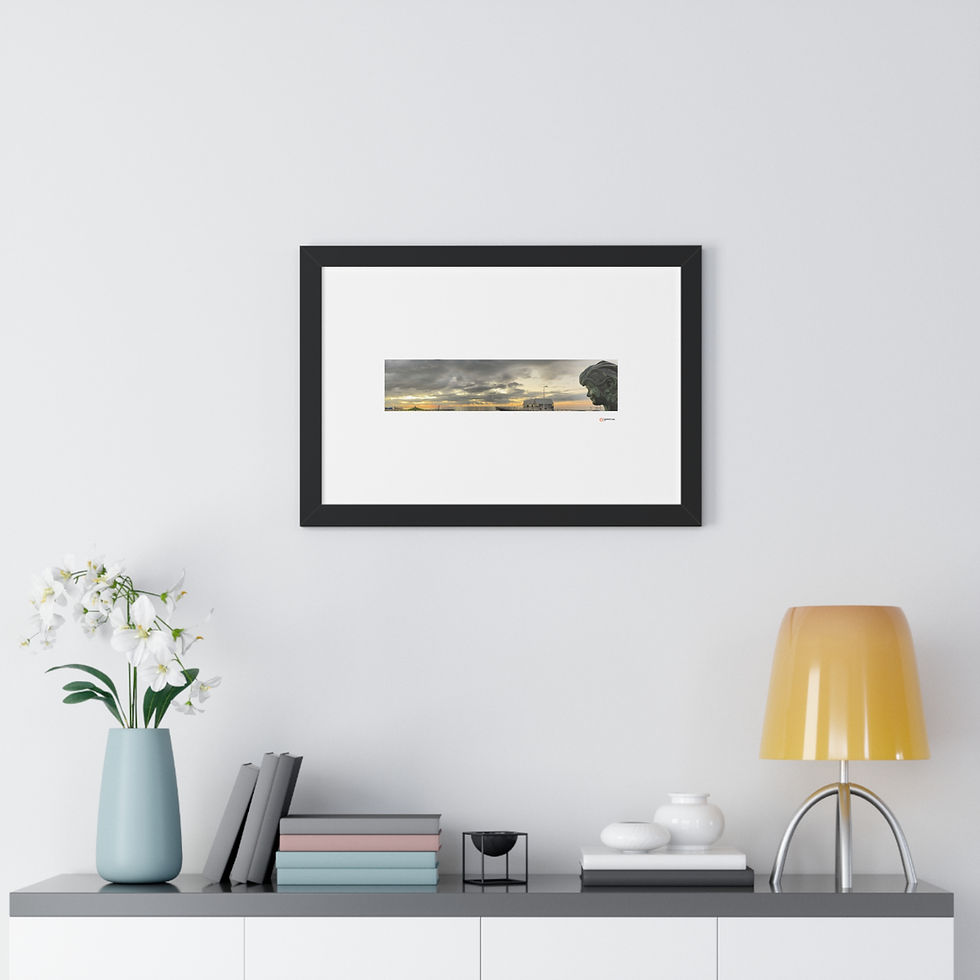 Framed Poster — Cityscape Panorama with Statue Silhouette